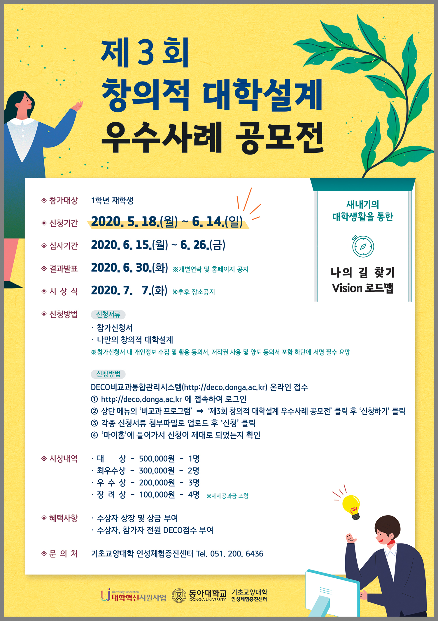 비교과 프로그램 열린 미래 꿈이있는 대학, 동아대학교 메인으로 이동 비교과 프로그램 대학소개 교양교육과정 교양 학사학위과정 특별학점 인정시험 센터소개 커뮤니티 비교과 프로그램 닫기 창의적 대학설계 우수사례 공모전 동좌문도 북클럽 글쓰기 특강 글쓰기 클리닉 독서에세이대회 창의적 대학설계 우수사례 공모전 봉사활동 수기 공모전 교양교육 학생평가단 동아 우수교양 콘테스트 쓰담쓰담 줍깅 챌린지 닫기 비교과 프로그램 비교과 프로그램 동좌문도 북클럽 글쓰기 특강 글쓰기 클리닉 독서에세이대회 창의적 대학설계 우수사례 공모전 봉사활동 수기 공모전 봉사활동 수기 공모전 소개 교양교육 학생평가단 동아 우수교양 콘테스트 쓰담쓰담 줍깅 챌린지 창의적 대학설계 우수사례 공모전 SNS 목록열기 FACEBOOK 공유하기 TWITTER 공유하기 BLOG 공유하기 SNS 목록닫기 인쇄 url 복사 창의적 대학설계 우수사례 공모전 소개 2018 제1회 창의적대학설계 2019 제2회 창의적대학설계 2020 제3회 창의적대학설계 2021 제4회 창의적대학설계 2022 제5회 창의적대학설계 2023 제6회 창의적대학설계 2024 제7회 창의적대학설계 구분성명대학학과소감문대상임*은공과대학전기공학과소감문 보기최우수상이*정인문과학대학고고미술학과소감문 보기홍*진공과대학화학공학과소감문 보기우수상박*정간호학부간호학과소감문 보기이*진사회과학대학정치·사회학부소감문 보기정*예술체육대학체육학과소감문 보기장려상강*정디자인환경대학조경학과소감문 보기김*지인문과학대학사학과소감문 보기박*영건강과학대학식품영양학과소감문 보기이*민사회과학대학사회복지학과소감문 보기