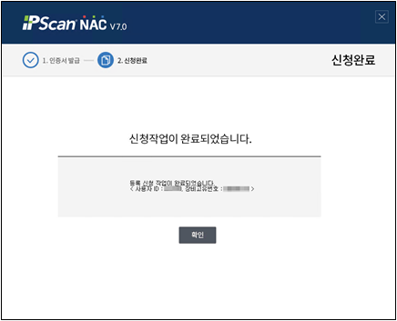 기타 메인으로 이동 기타 학교소개 입학안내 대학 대학원 학사안내 대학생활 동아광장 1차-개교80주년- 닫기 기타 기타 Agent 설치 단말 SNS 목록열기 FACEBOOK 공유하기 TWITTER 공유하기 BLOG 공유하기 KAKAO STORY 공유하기 SNS 목록닫기 인쇄 url 복사 NAC 에이전트 설치 단말1 작업표시줄 우측의 숨겨진 아이콘 표시 클릭 후 ‘N’모양의 아이콘 더블클릭2- ID: 개인의 학번/사번 입력- PW: 학생정보/그룹웨어 로그인 PW 입력※ 재직, 재학, 휴학생만 로그인 가능3 아래와 같은 메시지는 ‘신청’ 선택4 작업 완료 메시지 확인 후 재로그인